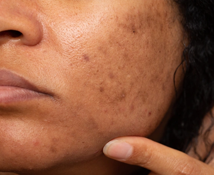 This occurs after an injury or inflammation to the skin, such as cuts, burns, acne, or eczema. PIH manifests as darkened patches or spots at the site of the healed skin injury.